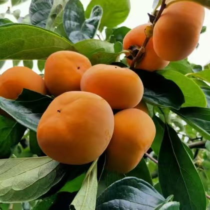 太秋系日本于1994年正式發布的雜交(富有×ⅡiG-16)育成的******甜柿品種,于2005年從日本引種,2014年通過品種認定。該品種具有早熟,樹勢強,結實力強等特點。果實8月中旬開始著色即可食用,成熟期9月上中旬。果實扁圓形,橙黃色,果頂部有細條紋,果形端正,單果重300g左右,果肉橙黃色,無褐斑,肉質脆嫩,可溶性固形物15%左右,種籽少或無,品質優。適宜海撥在300-700米的山地種植。