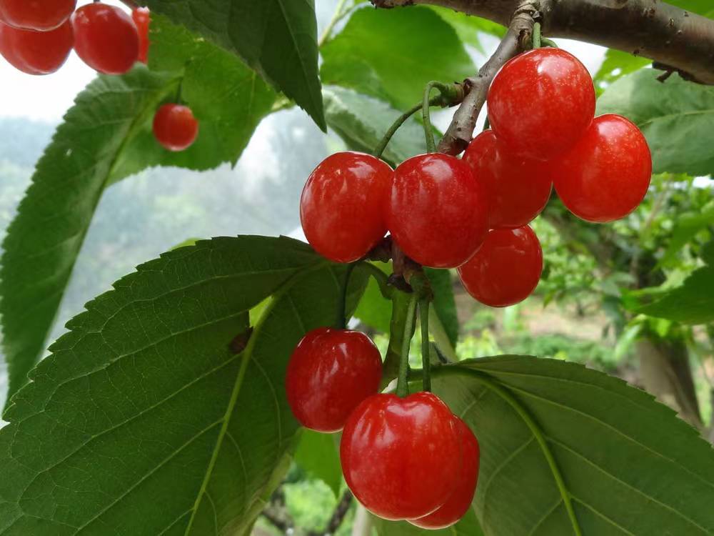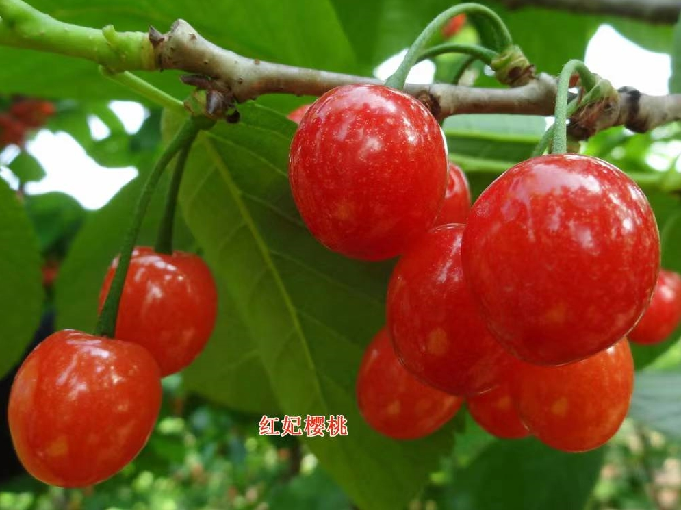 紅妃櫻桃是中國(guó)櫻桃品種,同時(shí)也是適合南、北方栽植,紅妃櫻桃因成熟早,在成都4月18號(hào)左右成熟,被美譽(yù)為早春第 一果,紅妃櫻桃屬短低溫,高糖大果型中國(guó)櫻桃品種。果實(shí)多呈乳頭狀,果頂 尖呈紅色,初熟時(shí)皮鮮紅色,充分成熟時(shí)皮濃紅光亮,外觀艷麗無(wú)比。平均果重7.2克,大果重達(dá)9克,與大櫻桃果實(shí)大小相近,比南方種植的中國(guó)櫻桃大0.5~1倍,是真正的南方櫻桃之 王。含糖18.5%,超過(guò)中國(guó)紅櫻桃和烏皮櫻桃,口感濃甜,爽口。紅妃櫻桃樹(shù)幼樹(shù)生長(zhǎng)較旺,結(jié)果后樹(shù)勢(shì)中庸。成花極易,豐產(chǎn)性極 好。自花結(jié)實(shí)力強(qiáng),花期遇雨也能完成結(jié)實(shí),花期抗晚霜能力強(qiáng)?;ㄓ鲞B陰雨和低溫,也達(dá)到理想的結(jié)實(shí)狀態(tài)。